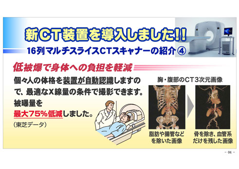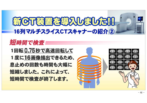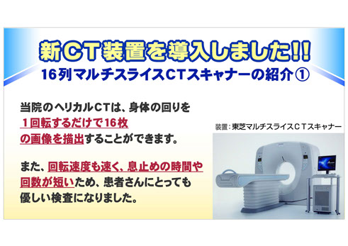 成人病などの早期発見にも効果を発揮する最新のCT装置を導入しています。