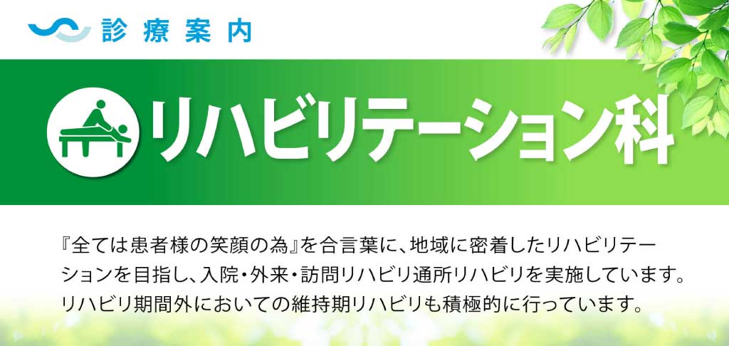 当院では地域に密着したリハビリテーションを目指し、入院(一般・療養)・外来・訪問リハビリテーション・通所リハビリテーションを実施しています。